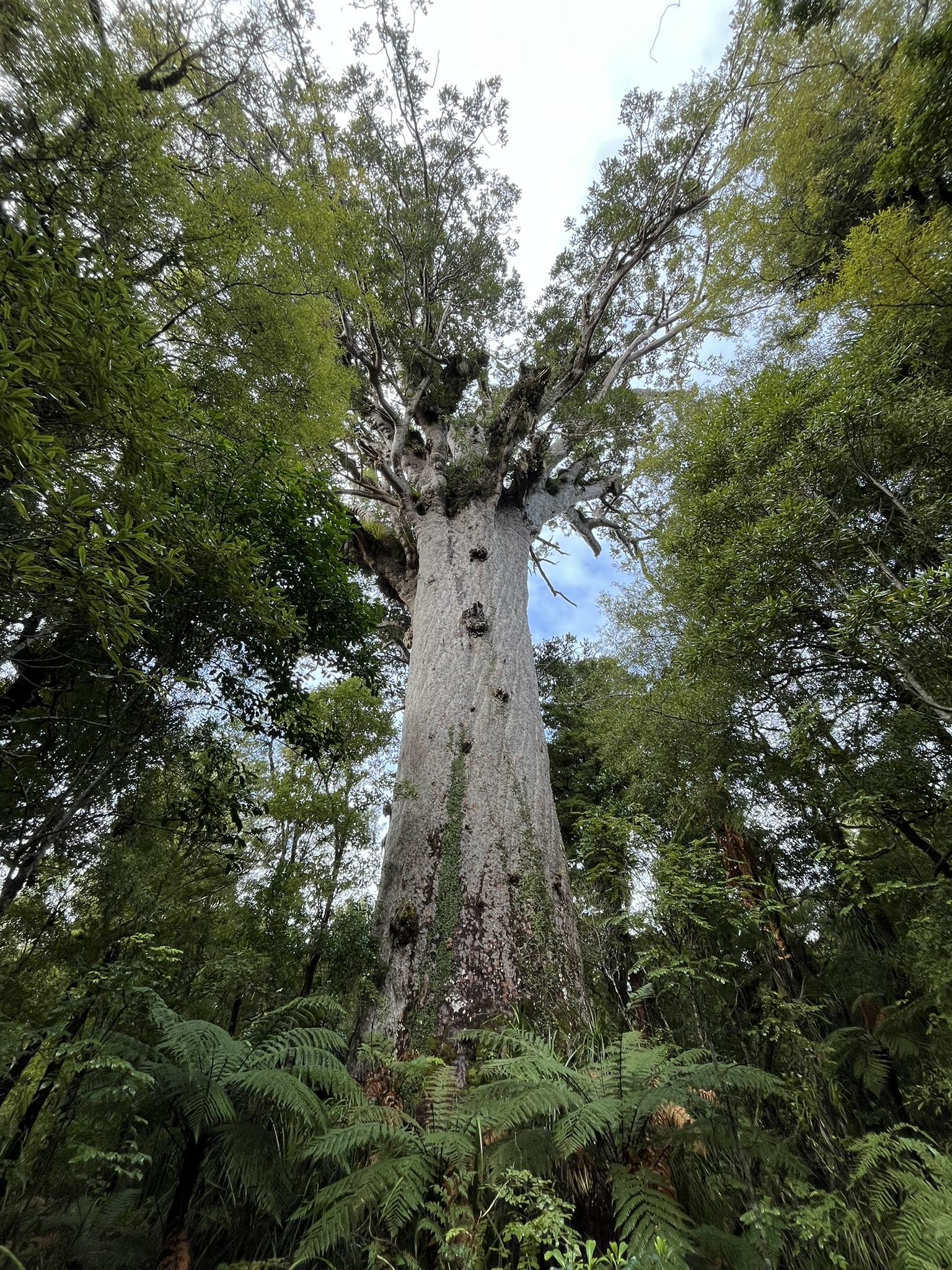 Then a short drive on a road flanked by other massive Kauri, to the second largest, and way older Kauri, Te Matua Ngahere. This tree could be around 4000 years old, making it a seedling at the time of the pyramids being built, and is even girthier than Tāne Mahuta. To get to it, one must walk a little bit of a walk through the dense forest, with there every couple of meters being another one of these Kauri giants standing sentinel.