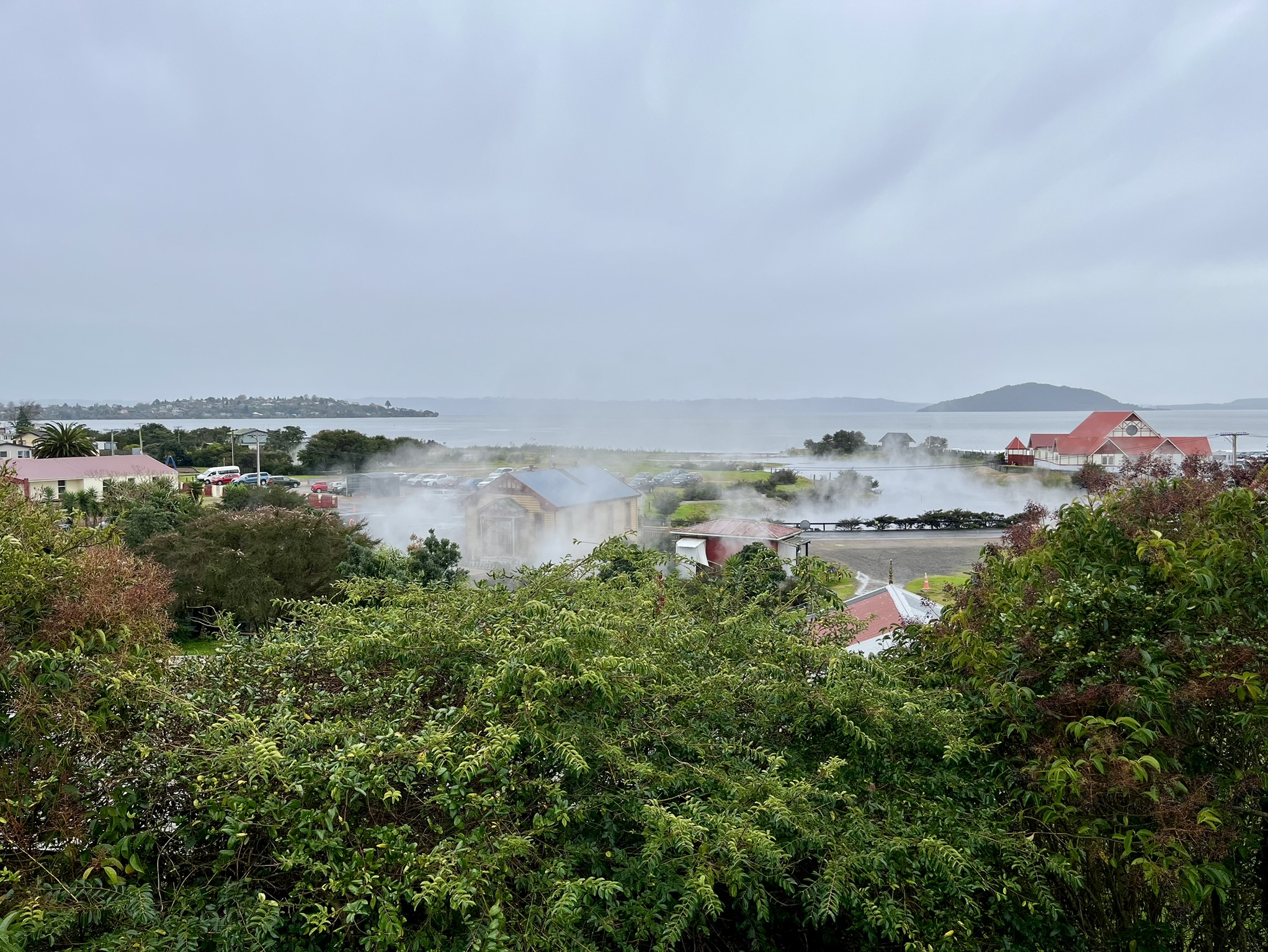 My first day in Rotorua, on the 17th of July, was a bit of a slower one as I had had an incredibly intense week of travels, and it was raining. Some background on Rotorua, it is one of the most thermally active areas in New Zealand, with Lake Rotorua being a volcanic crater, and there just randomly rising up hot water from the ground, sometimes just a meter off the pavement in a normal neighbourhood.